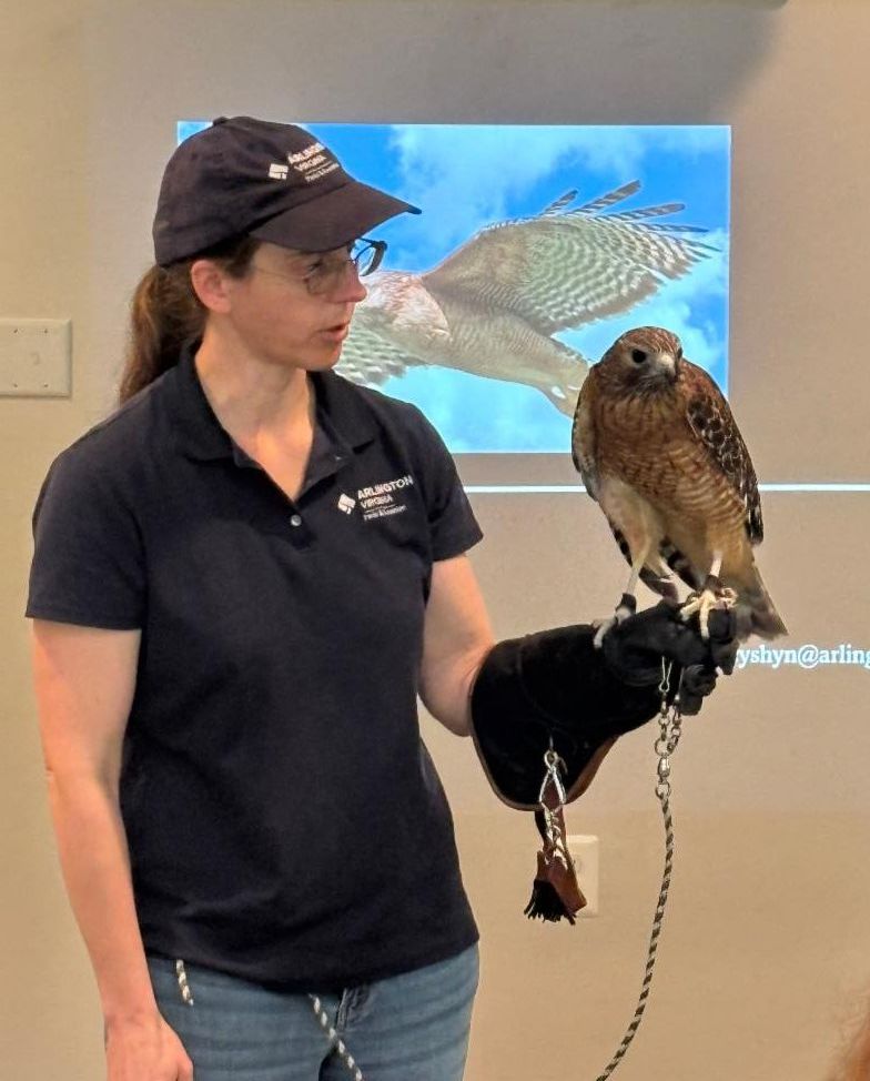 | | Encore Learning members learned about our local raptors — owls, hawks, eagles, falcons and kites — and how to spot them in the wild in Introduction to Spring Birding. This popular class includes both classroom and outdoor sessions. Despite some issues with rainy weather, members observed an impressive list of birds in our area. During a class on May 22 the group identified 25 bird species. Thank you to member Wendy Swanson for serving as Coordinator for this class. Pictured is Gabby Hrycyshyn, a naturalist at Gulf Branch Nature Center. -Photos courtesy of Beth Hickey | | |