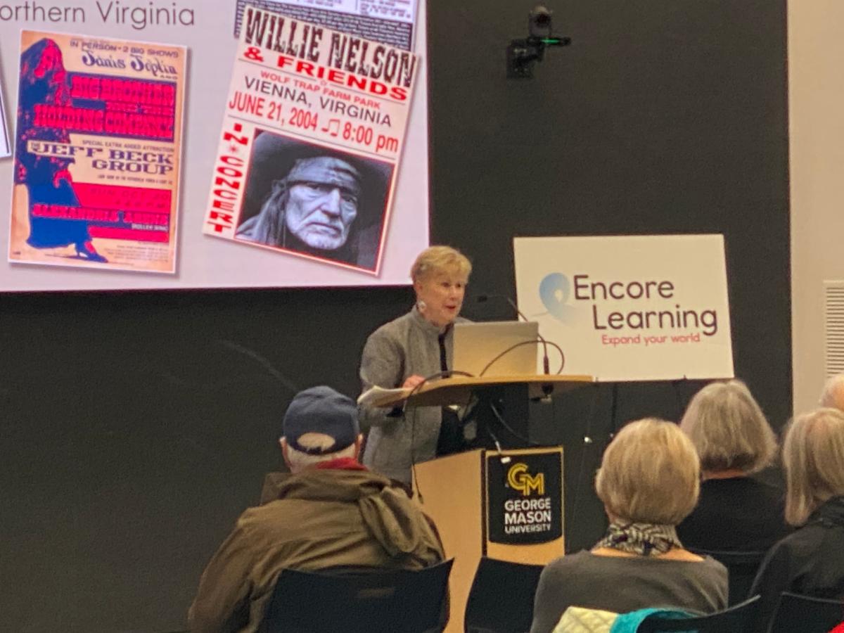 On October 27, Ken Avis, musician, historian and popular Encore Learning lecturer, related the history, culture and vibe of the music scene in northern Virginia, highlighted by clips of many of these and other early performers. Many were well known – Pete Seeger, Woody Guthrie and Hank Williams, and Tom Paxton. Others were popular at the time but have faded from memory. Performers like Elizabeth Cotton who sang “Freight Train,” Mississippi John Hurt and Ernest Stoveman, who had 15 children, some of whom followed him into musical careers.