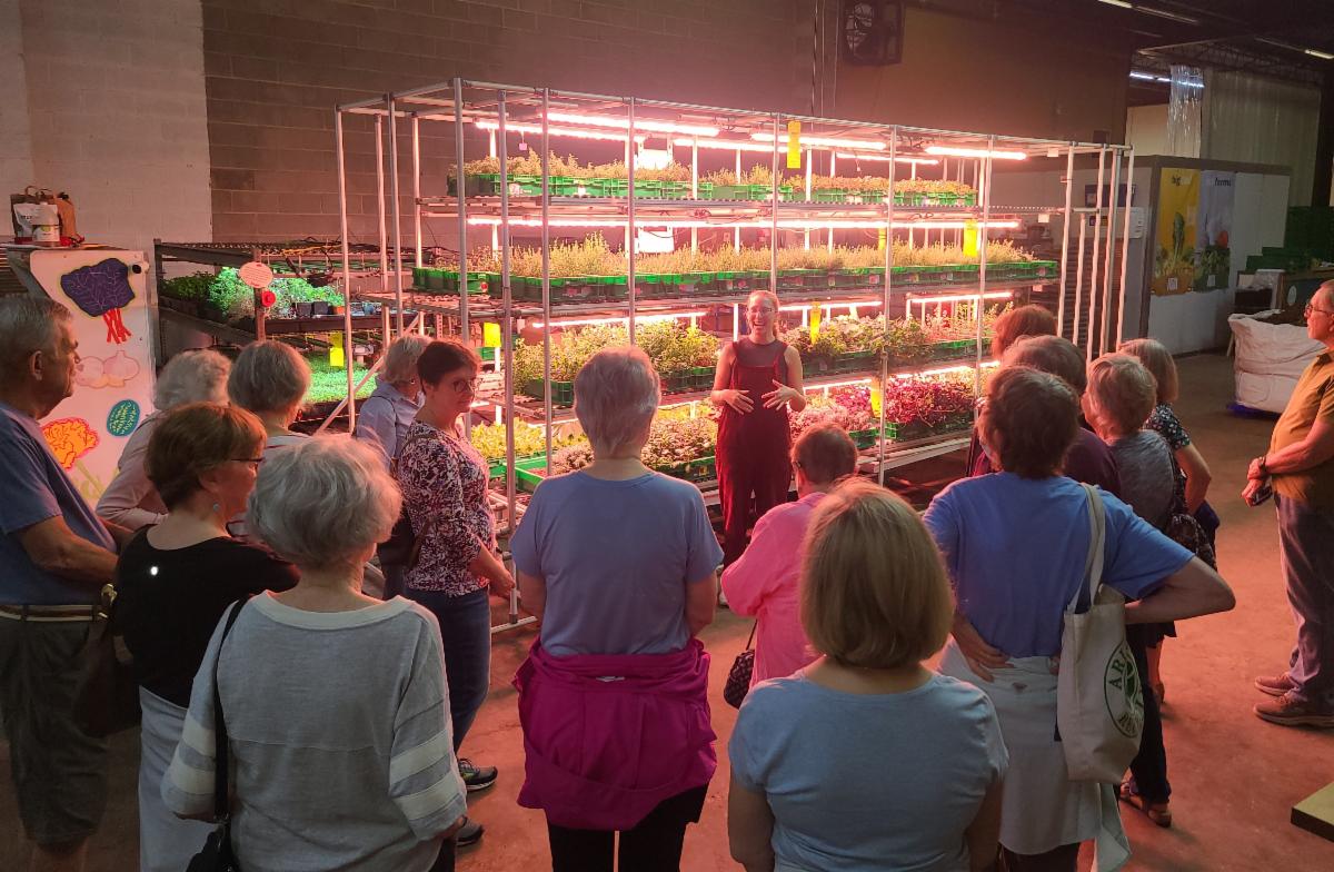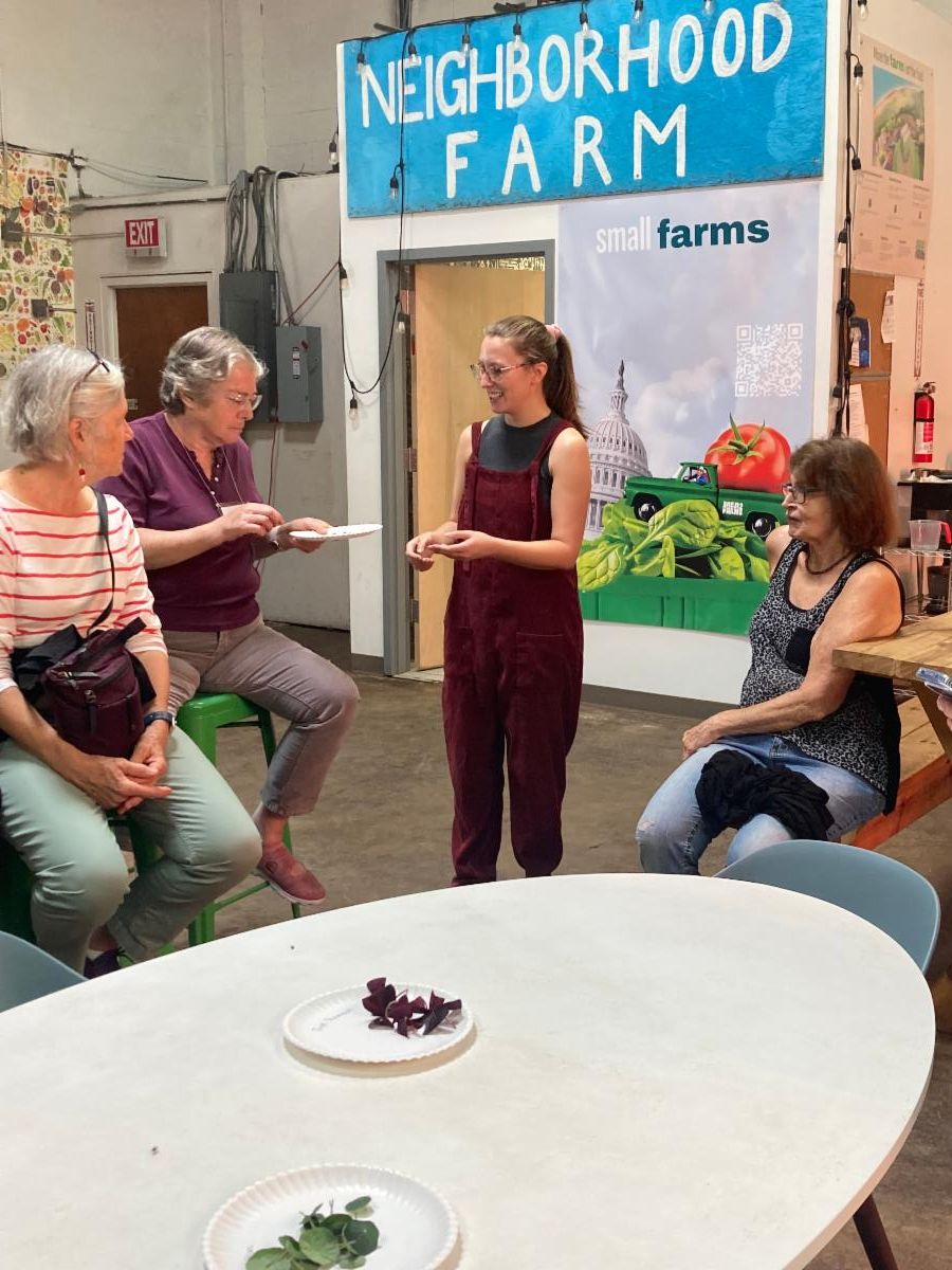| | On September 29th Jessica Kaplan of the Arlington Historical Society presented Stumbling Stones: Memorializing Arlington’s Enslaved People. We learned about the origin of this initiative, the research being done, the work of Arlington Tech students to recreate some of the plaques, the response of the community and where to find already embedded stumbling stones. A recording of the presentation is available on our YouTube channel. | | On October 6th journalist and author David Poole discussed his timely book about recent Virginia political history. Trusted Source – How a Virginia Nonprofit Gained Bipartisan Support in an Era of Political Polarization tells the unlikely success story of the Virginia Public Access Project (VPAP). You can view a recording of this event on our YouTube channel here. | | On September 30, a lucky group of Encore Learning members visited Area2Farms and learned about vertical farming, worm farming, and composting…a lot of industry under one roof! Farm tour leader Marissa Bale also awakened tastebuds with purple shamrocks, nasturtium leaves and a wasabi arugula! – Nancy Kilpatrick, Special Events Committee. Photos courtesy Nancy Kilpatrick and Tom Underwood. | | | On October 7th, 20 Encore Learning members visited the GWU Museum for a guided tour of the city of Washington, D.C. history exhibit. | | |
